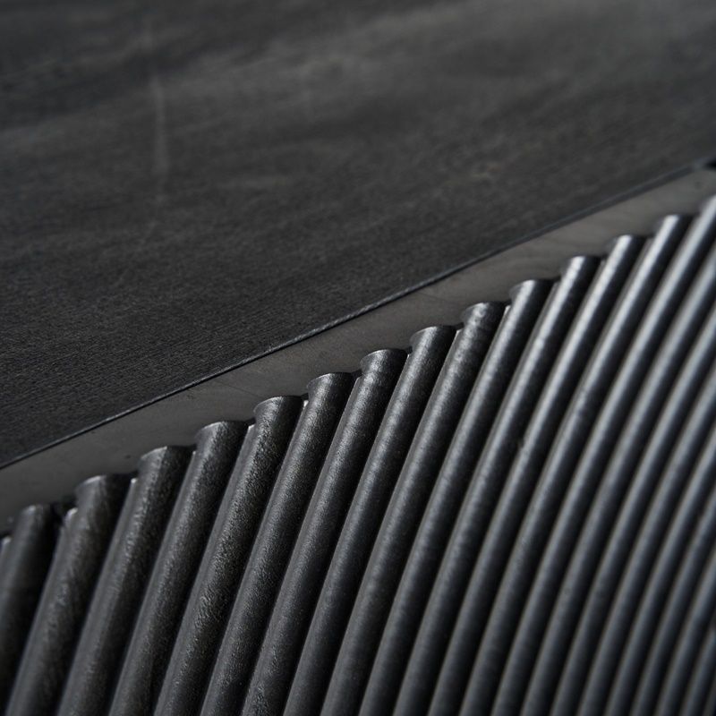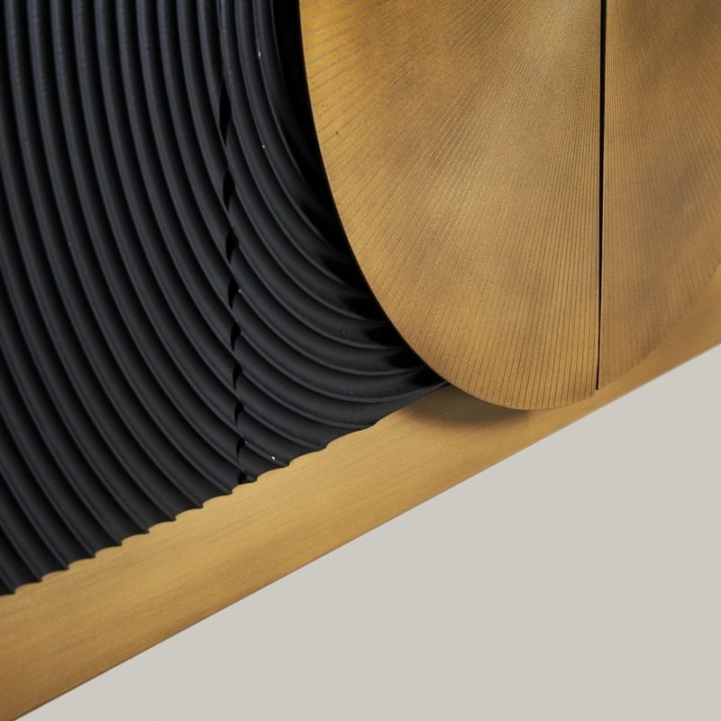 Buffet Dobeln, en color negro y oro de estilo Art Decó. Fabricado en hierro y combinado con madera de mango.