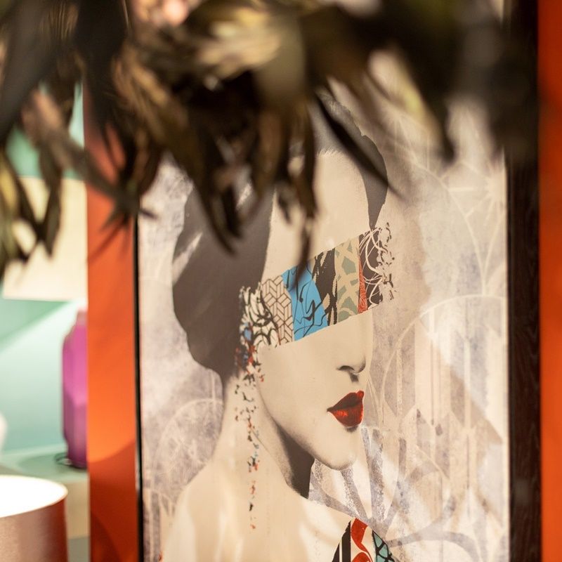 Cuadro imagen de mujer con gafas con foam. Fabricado en lienzo serigrafiado.