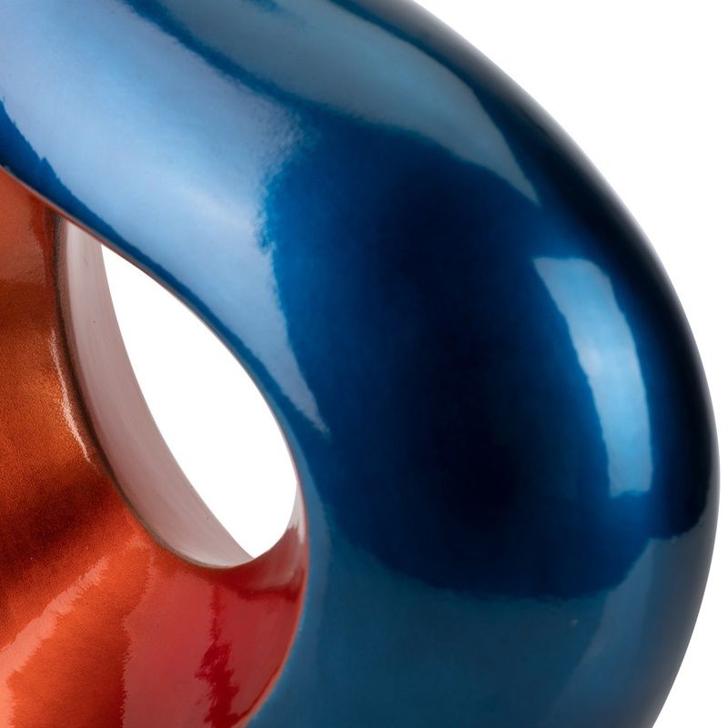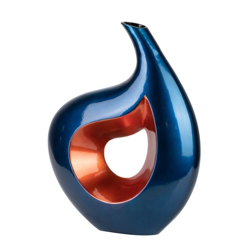 Florero de cerámica lacada en azul y naranja