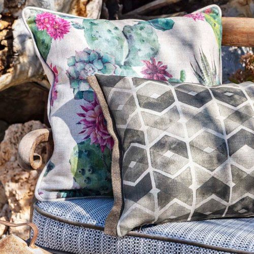 Funda de cojín con diseño de estampados geométricos a pequeña escala y que complementa a la perfección con los elementos botánicos de la colección Foresta. Con una paleta en diferentes tonalidades de verde, la naturaleza gana terrero en esta selección de piezas.