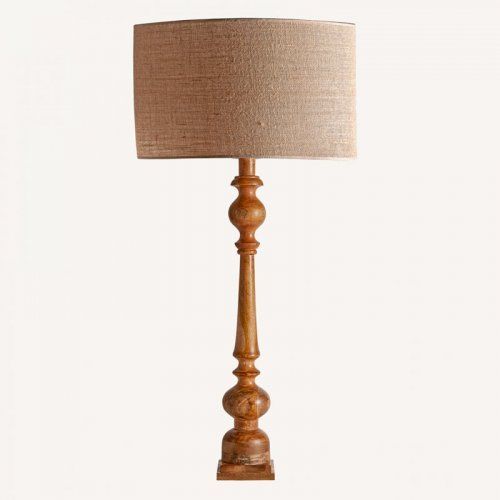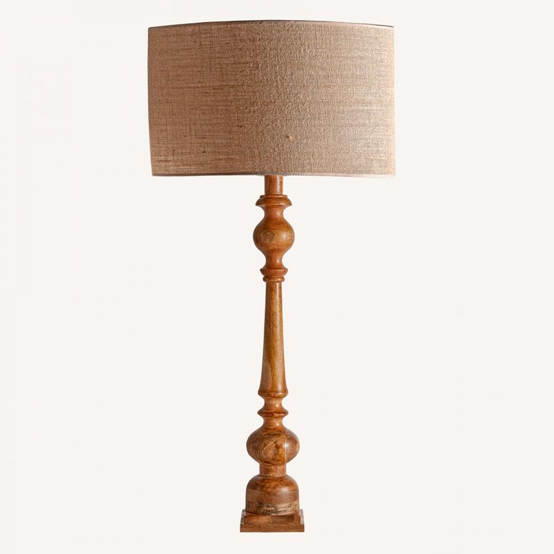 Lámpara de pie, en color natural, de estilo colonial. Fabricada en yute, combinado con madera de mango.